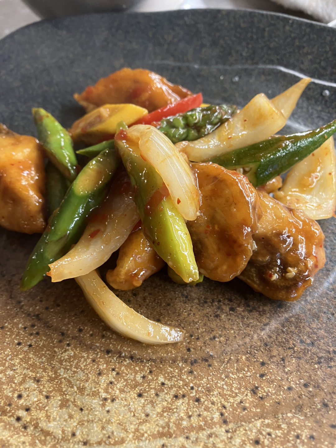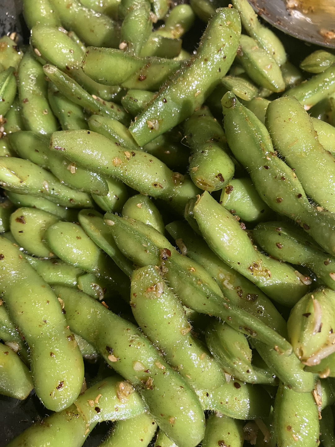 真鱈の白子を衣揚げにして、唐辛子と山椒塩で炒め絡めた一品です。